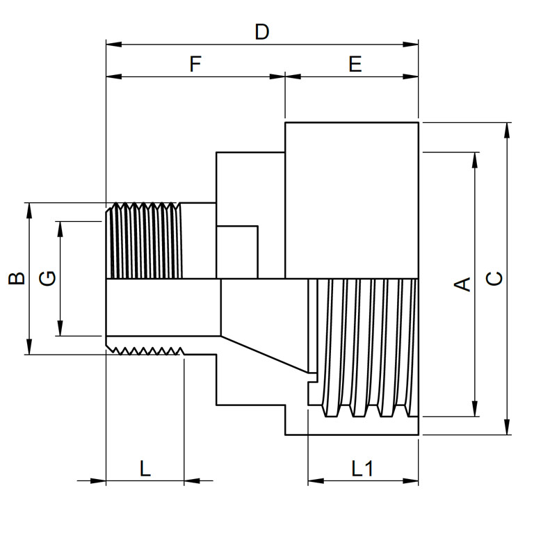 IBC Adapter S60x6 Innengewinde aus Edelstahl V4A (1.4404) – SS316L mit BSP Außengewinde ohne Dichtung.