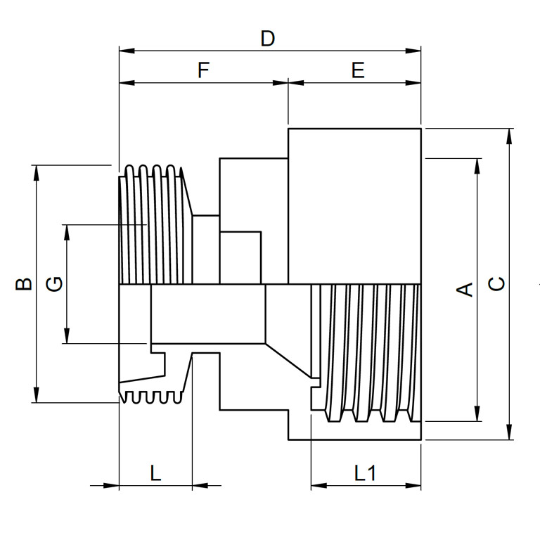 IBC Adapter S60x6 Innengewinde aus Edelstahl V4A (1.4404) – SS316L mit Milchrohraußengewinde nach DIN 11851.