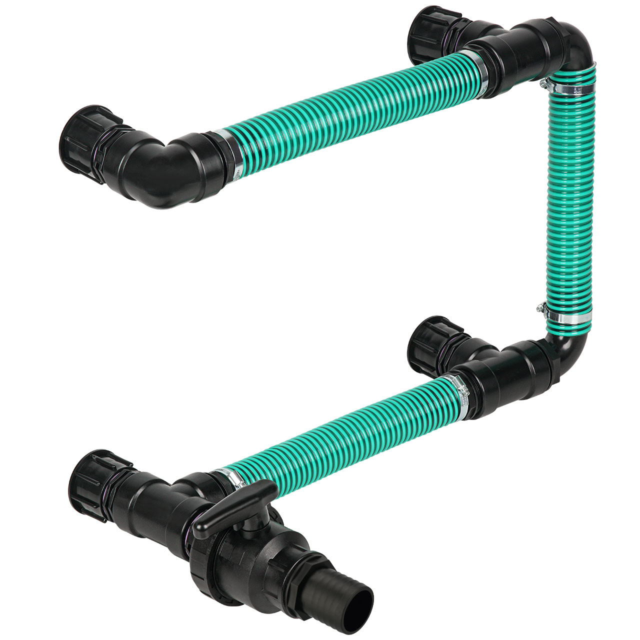 Mit der IBC Schlauch Tankverbindung können Sie 4 IBC Container mit einen IBC Hahnausgang S60x6 Grobgewinde neben-/übereinander verbinden.