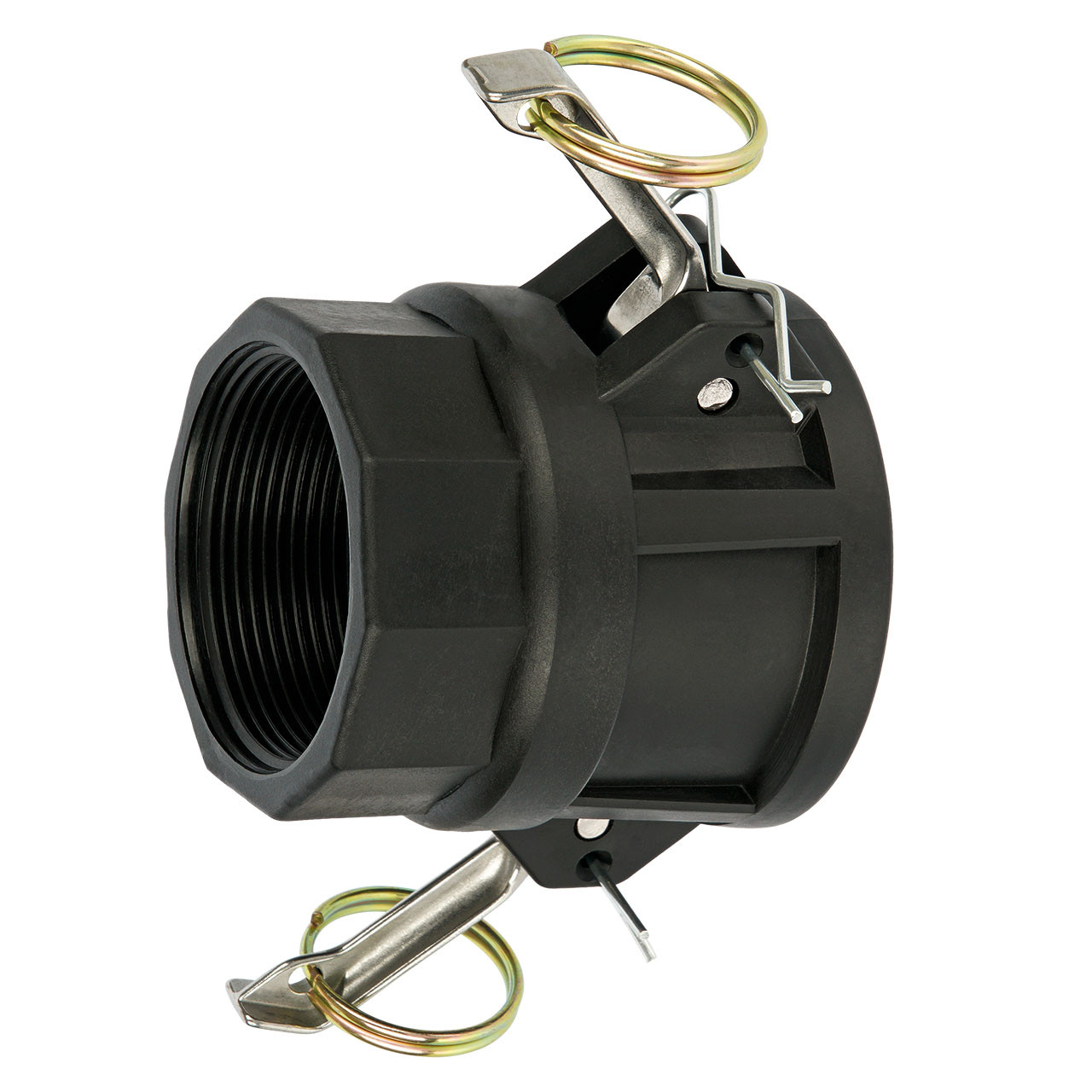 Die bekannten Camlock-Kupplungen oder auch Camlock-Sicherheits-Kupplungen kommen hauptsächlich in der Industrie vor. Diese Camlock Stecker und Camlock Dosen sind Schnellkupplungen zur Verbindung von Schlauch- und Rohrleitungen. Weltweit werden Camlock-Industriekupplungen (Synonym: Hebelarmkupplungen, siehe seitliche Hebel) nach der amerikanischen "Military Specification" MIL-C-27487 gefertigt, in der nur die Kupplungsseite, nicht aber die Anschlusseite festgelegt ist. Sie erkennen einen Camlock Anschluß an dem kurzen Gewinde (63mm Feingewinde; 2 1/8") und einer dahinter liegenden Welle bzw. Lippe. Dieser wird Stecker, auch Vaterkupplung, genannt. Hinter dem Stecker (Vertiefung rund um den Hahn) greift die Verriegelung der Kamlok Dose (Mutterkupplung).