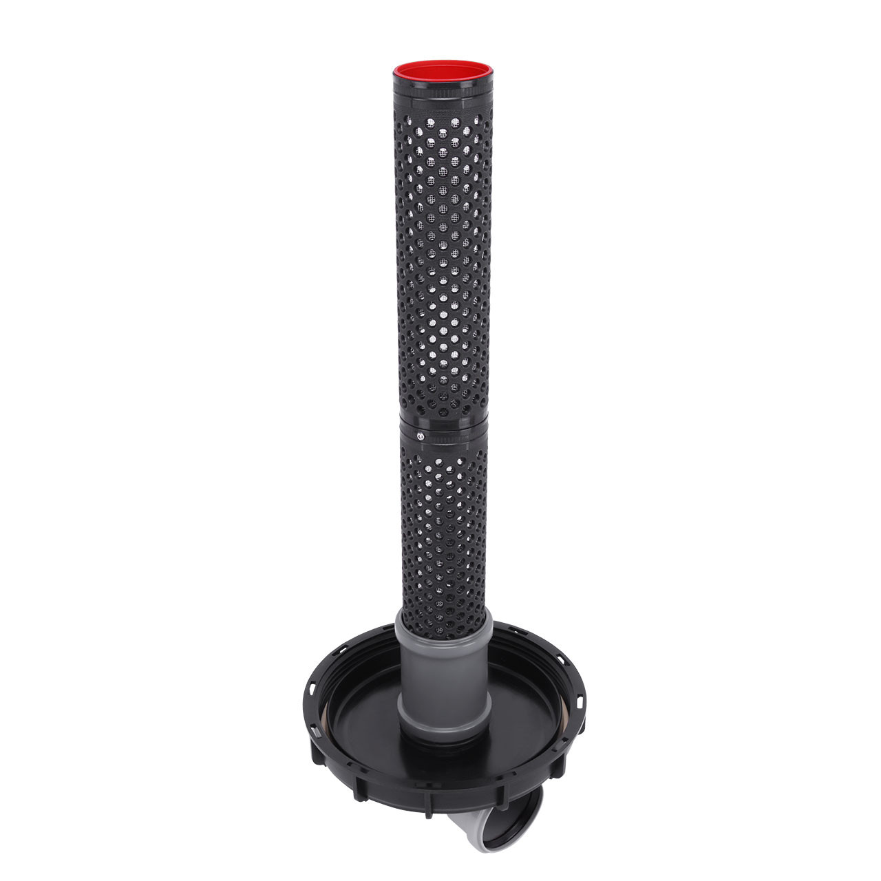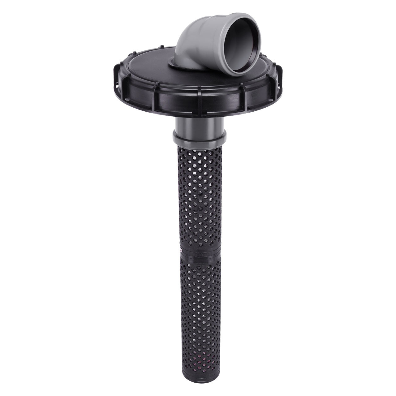 Der Deckelfilter ist mit einem vormontierten und abgedichteten 87° HT-Bogen in den Varianten DN 50 oder DN 75 verfügbar. Der EXTRA-LANGE Filterkrob ermöglicht grobe Verschmutzungen, wie z.B. Laub aus dem Regenwasser zu filtern. In dem Filterkorb befindet sich zusätzlich ein Feinfilter aus Aluminiumgewebe (Gewebedichte 1,19 x 1,59 mm / Gewebestärke 0,22 mm). Unverzichtbar beim Aufbau einer Regenwasser Sammelanlage mit Zulauf über die Dachrinne bzw. das Fallrohr. Er wird einfach durch den Deckel, der sich bereits auf Ihren IBC befindet ersetzt. Durch das HT-Stecksystem ist eine Reinigung möglich, da der Filterkorb an der Unterseite am Deckel entnommen werden kann. Der IBC Deckel ist passend für IBC Container der Hersteller SCHÜTZ, WERIT oder baugleichen IBC (MAUSER ist nicht passend). Wir weisen daruaf hin, dass die Dichtigkeit bei dynamischem Druck -auch Staudruck genannt- nicht garantiert werden kann.