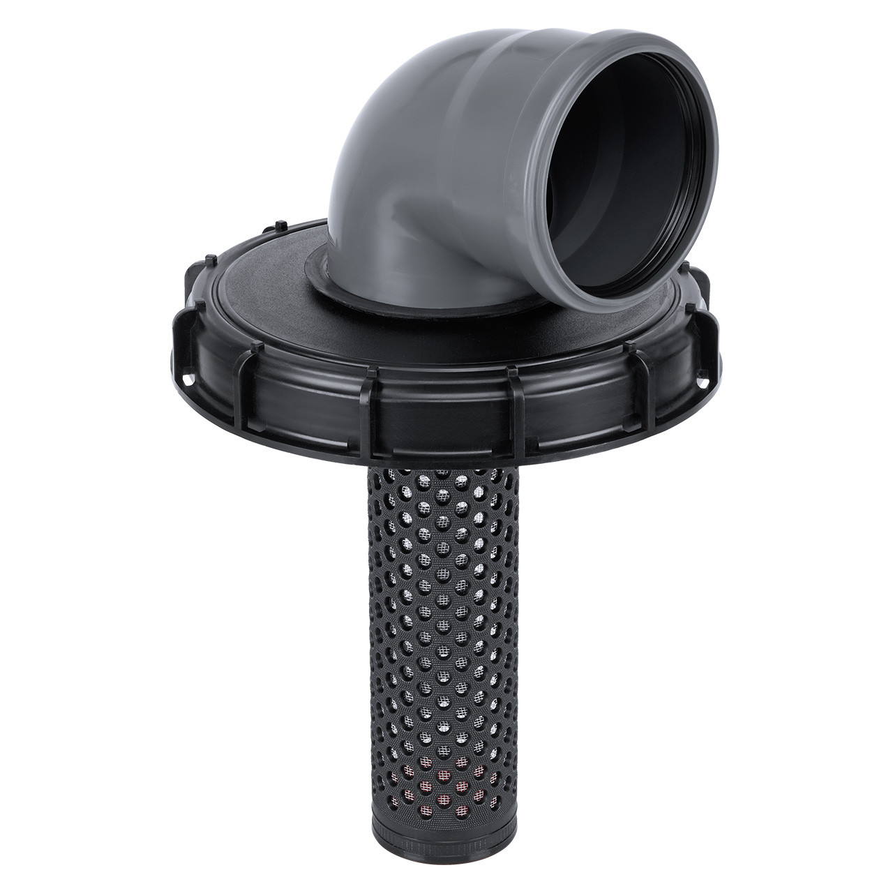 Der Deckelfilter ist mit einem vormontierten und abgedichteten 87° HT-Rohr in den Varianten DN 50 oder DN 75 verfügbar. Bitte beachten Sie, dass die Dichtigkeit bei dynamischem Druck -auch Staudruck genannt- nicht garantiert werden kann. Der Filter ermöglicht grobe Verschmutzungen, wie z.B. Laub aus dem Regenwasser zu filtern. Unverzichtbar beim Aufbau einer Regenwasser Sammelanlage mit Zulauf über die Dachrinne bzw. das Fallrohr. Er wird einfach durch den Deckel, der sich bereits auf Ihren IBC befindet ersetzt. Durch das HT-Stecksystem ist eine Reinigung möglich, da der Filterkorb an der Unterseite am Deckel entnommen werden kann. In dem Filterkorb befindet sich zusätzlich ein Feinfilter aus Aluminiumgewebe (Gewebedichte 1,19 x 1,59 mm / Gewebestärke 0,22 mm). Der IBC Deckel ist passend für IBC Container der Hersteller SCHÜTZ, WERIT oder  baugleichen IBC (MAUSER ist nicht passend).
