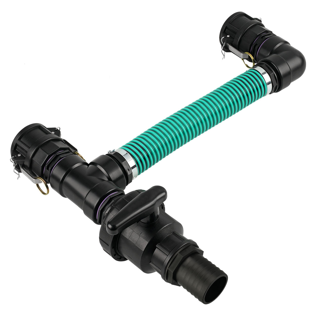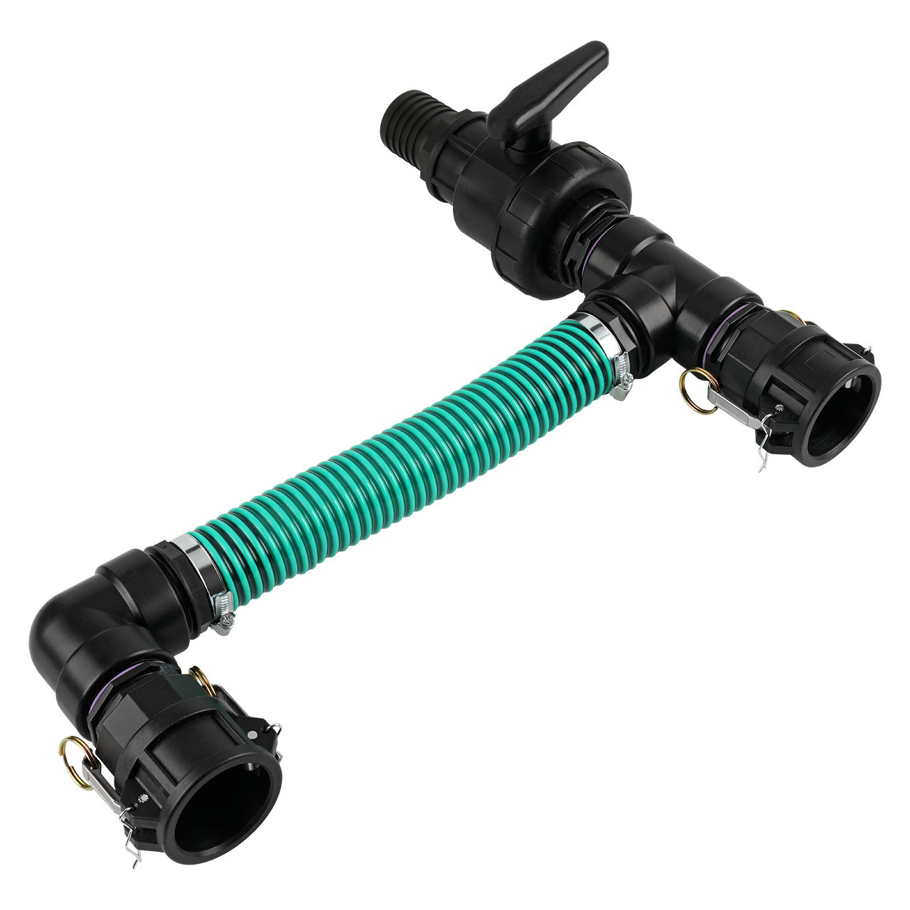 Mit der IBC Tankverbindung können Sie 2 IBC Container mit einen IBC Hahnausgang 64x2,3 DN50 (62,4-63mm) kurzes Feingewinde Schütz bzw. 2" Kamlock Vaterteil nebeneinander verbinden.