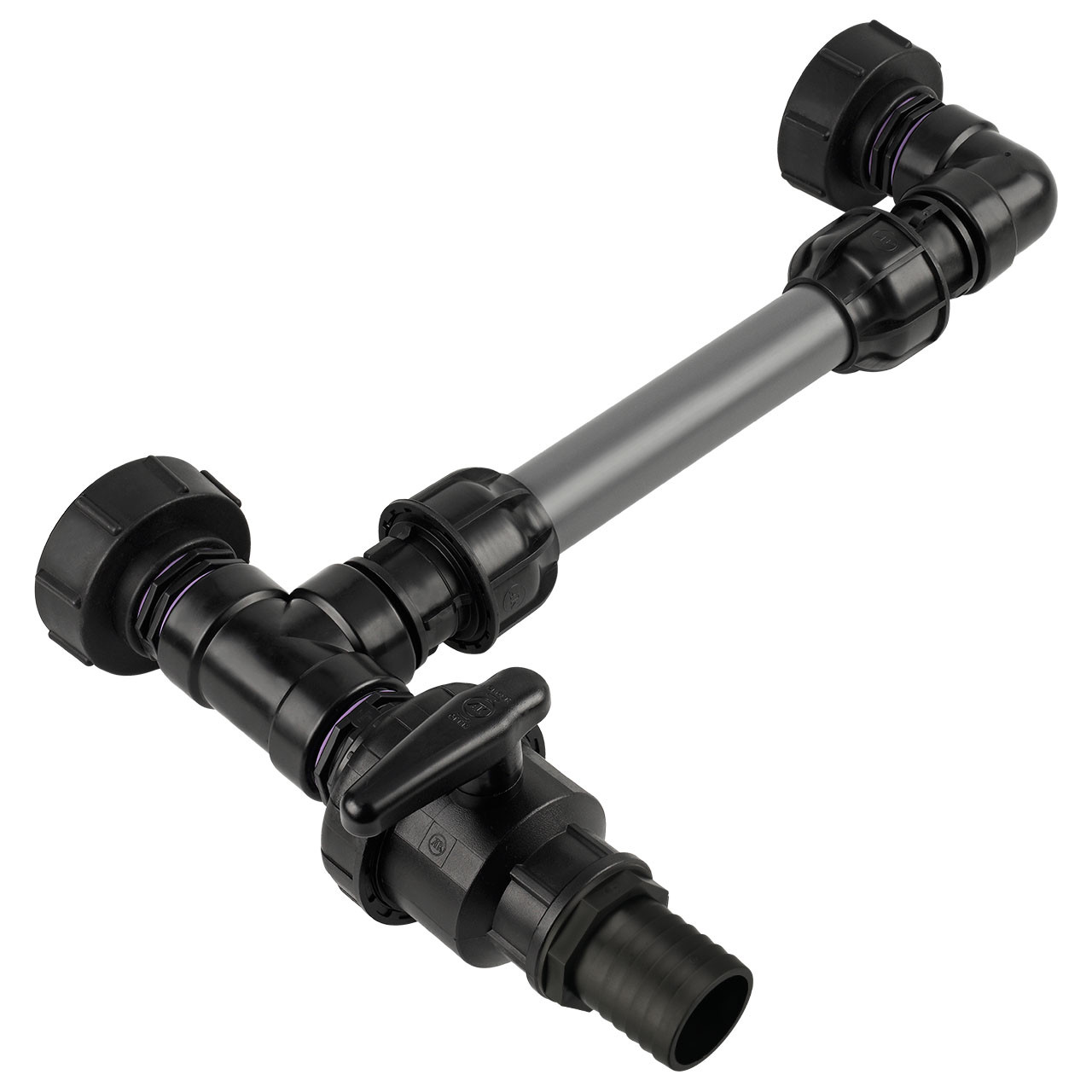 Mit der IBC Rohr Tankverbindung können Sie 2 IBC Container mit einen IBC Hahnausgang S100x8 Grobgewinde nebeneinander verbinden.