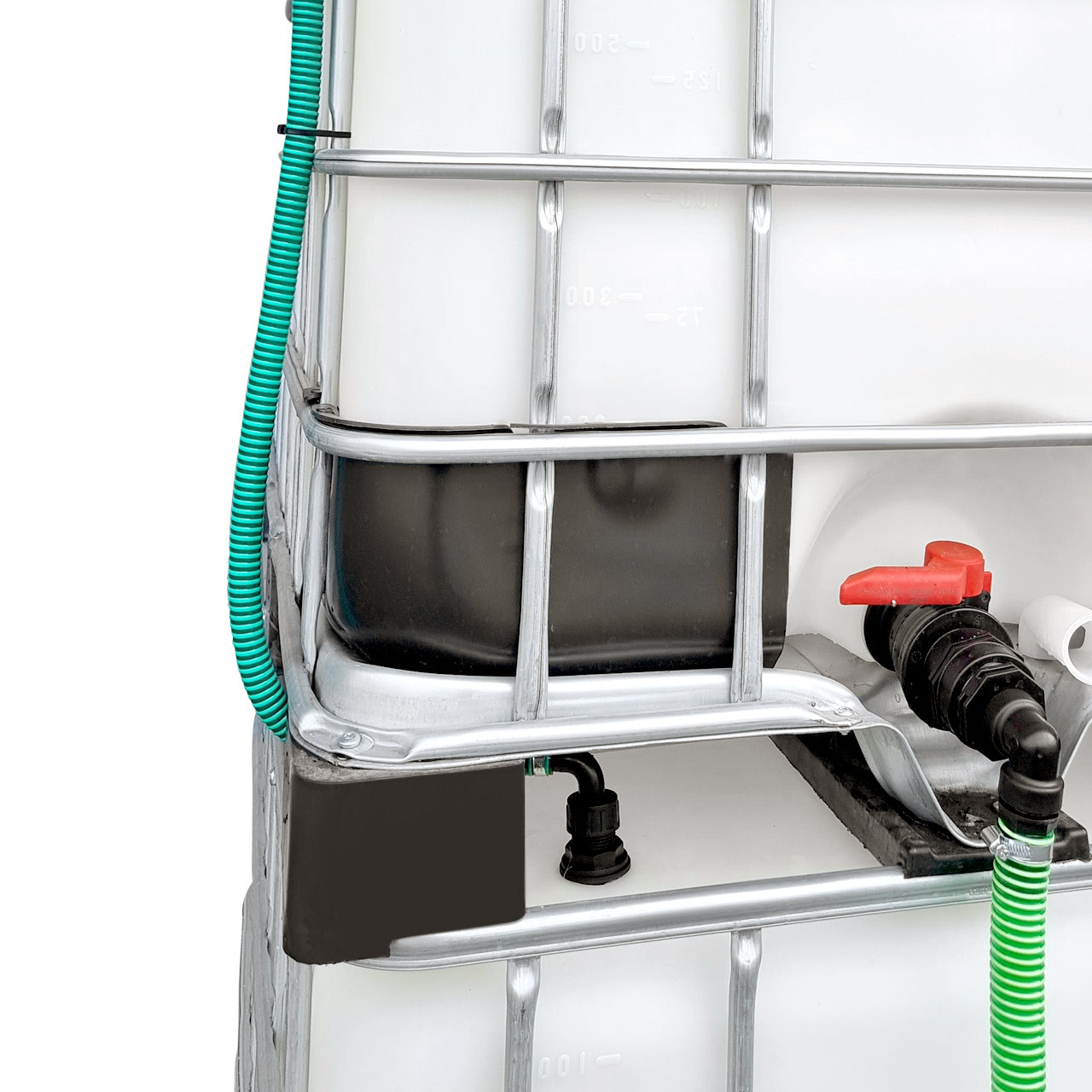 Die abgebildeten 1000l IBC Container dienen nur zur Dekoration und sind nicht im Lieferumfang enthalten!