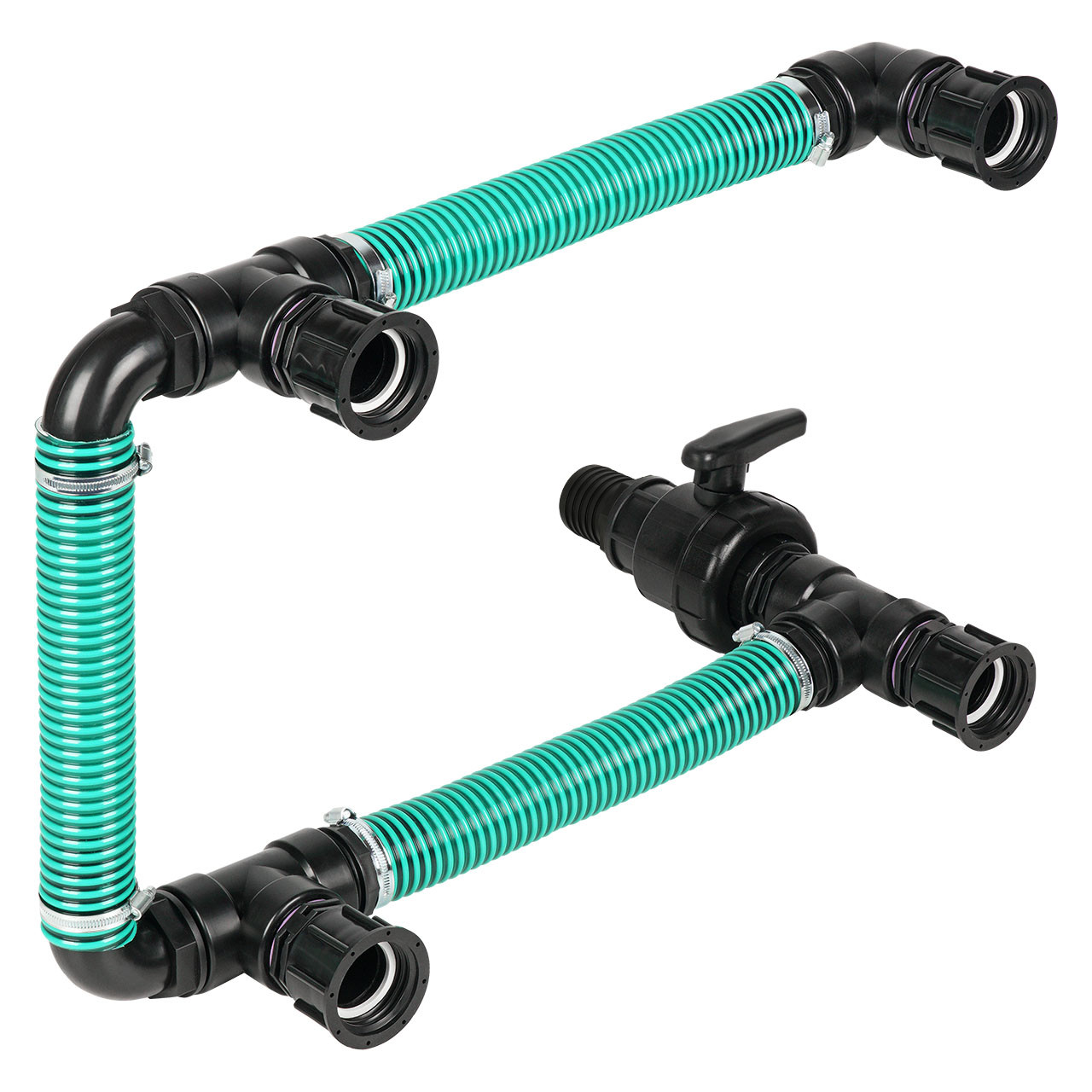 Mit der IBC Schlauch Tankverbindung können Sie 4 IBC Container mit einen IBC Hahnausgang S60x6 Grobgewinde neben-/übereinander verbinden.