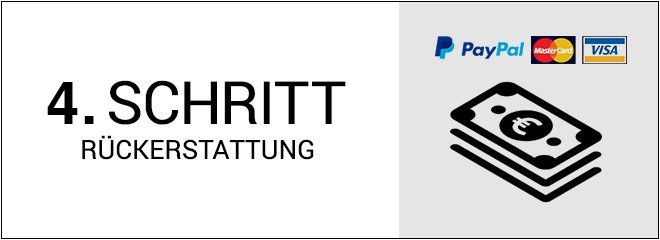 Nach Erhalt der Rücksendung erstatten wir Ihnen den bezahlten Kaufpreis auf dem gleichen Weg zurück, wie Sie bezahlt haben. Bitte beachten Sie bei Nachnahme-Bestellungen, die Bankverbindung für eine Rücküberweisung mit anzugeben.