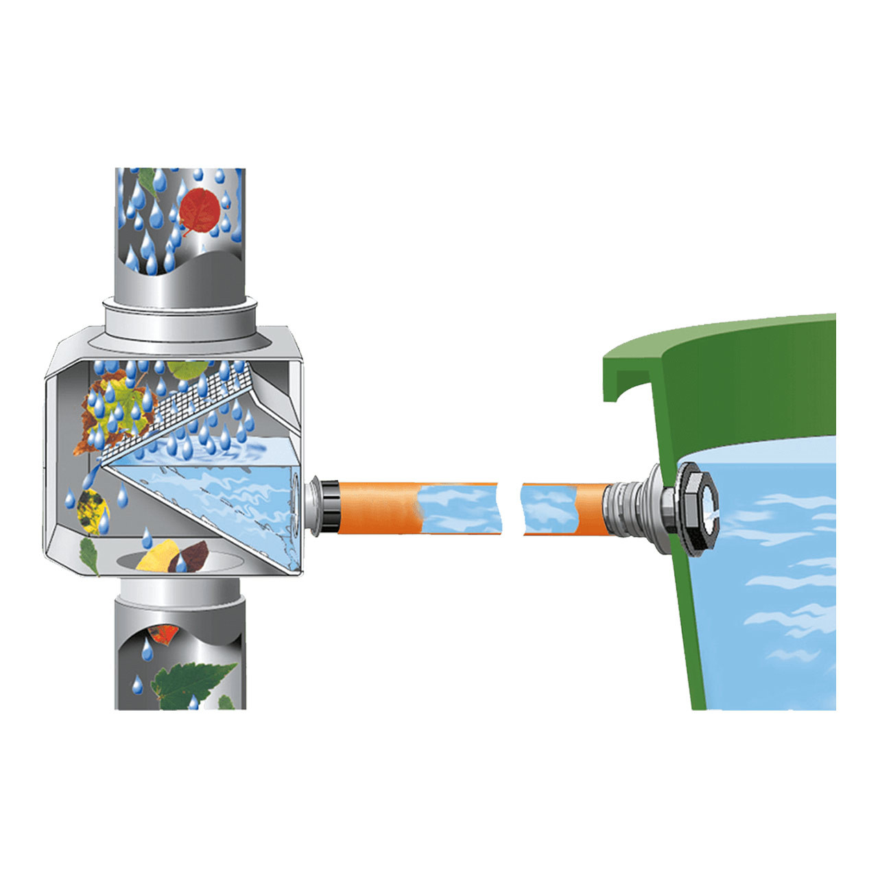 Dabei filtert er zuverlässig Verschmutzungen aus dem Regenwasser und weißt unter den Füllautomaten die höchste Wasserausbeute von ca. 90 % auf. Der Selbstreinigende Fallrohrfilter mit Edelstahl-Feinfilterfläche kann bei Bedarf zur Reinigung unkompliziert auseinander gebaut werden. Bei richtiger Montage der Zuleitung zum Regenbehälter wird dieser automatisch gefüllt und ein Überlaufen des vollen Tanks wird verhindert. Die Umstellung von Sommer- auf Winterbetrieb und anderes herum ist möglich durch wenden des Filtereinsatzes. Im Winterbetrieb fließt kein Regenwasser zu. Damit wird ein Einfrieren der Regentonne verhindert.